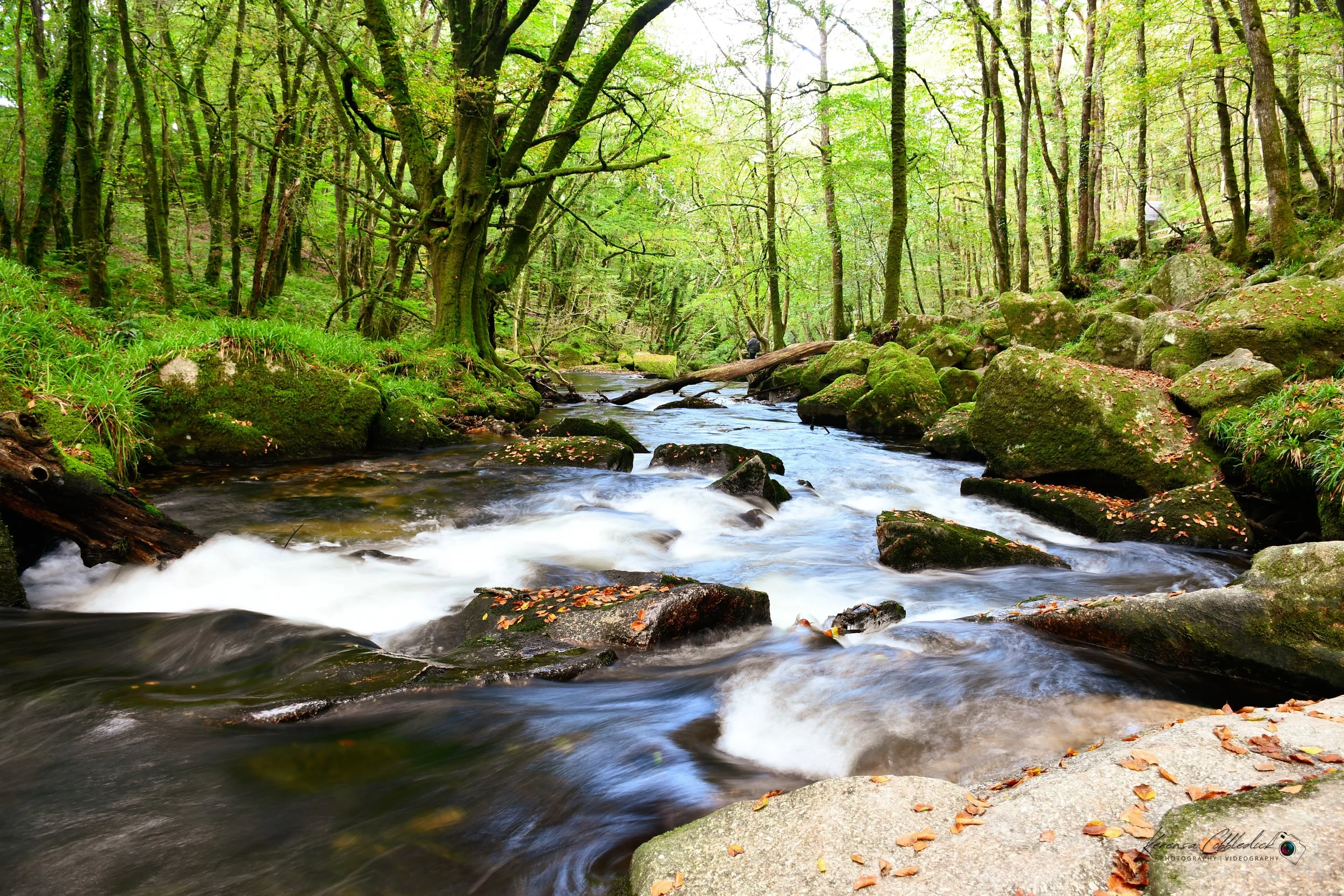 Peaceful woodland and The River Fowey at Golitha Falls, Bodmin Moor, Cornwall